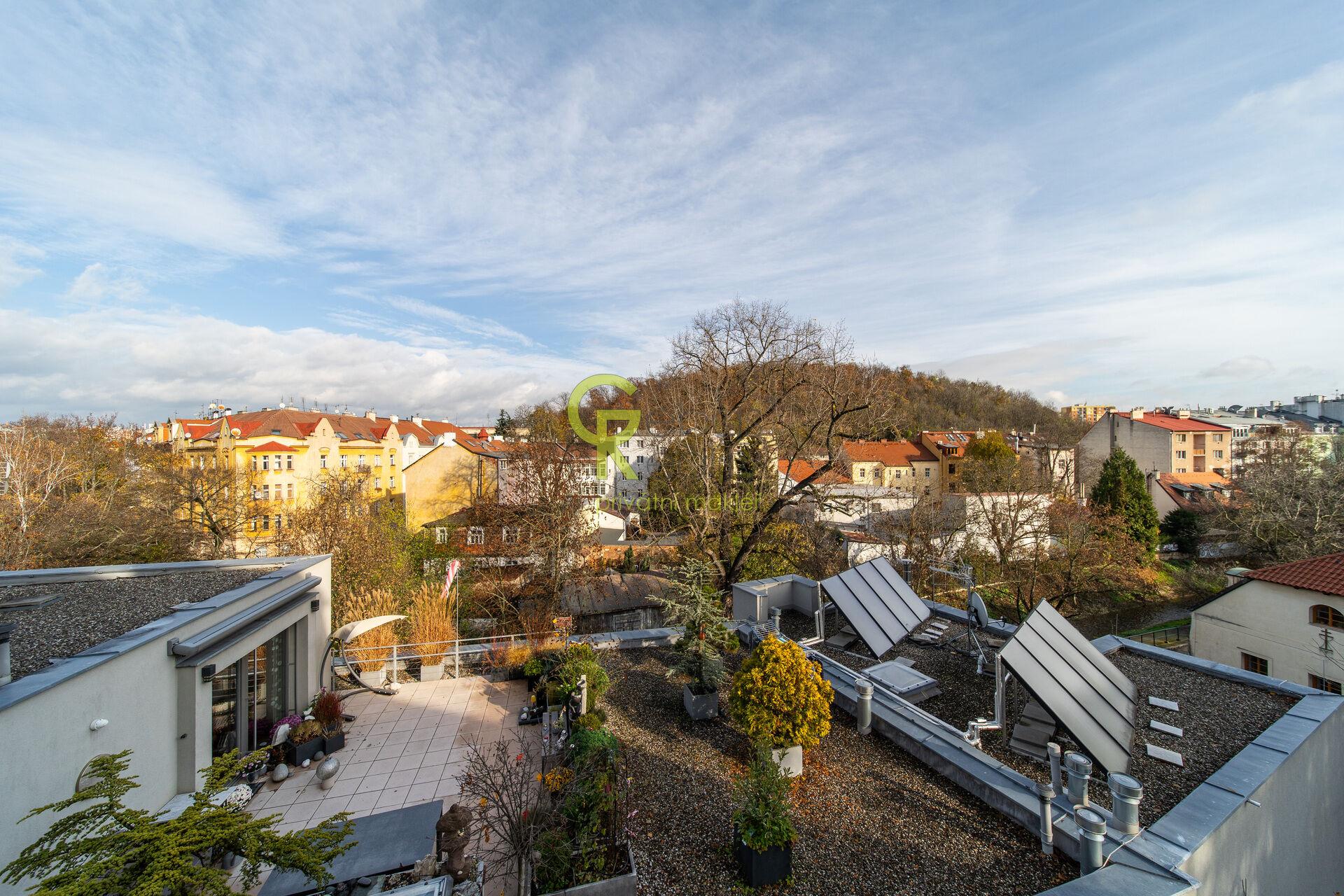 Ve výhradním zastoupení majitele si Vám dovolujeme nabídnout k prodeji krásný, prostorný a světlý mezonetový byt o dispozici 3+kk a celkové užitné ploše 108 m² + plocha teras 12 m2, který se nachází přes dvě podlaží menšího bytového domu v klidné a vyhledávané lokalitě Prahy 4 – Michle, v na konci slepé ulice Ve Vilách. Dům je situován ve svahu a byt díky tomu nabízí příjemný výhled do okolní vilové čtvrti a na zeleň. Spodní patro tvoří prostorný obývací pokoj s moderní kuchyňskou linkou na míru vybavenou vestavnými spotřebiči, jídelní částí a krbovými kamny, které navozují útulnou atmosféru domova. Z obývacího prostoru je vstup na terasu s možností posezení. V této úrovni se nachází také koupelna se sprchovým koutem a toaletou. V horním patře jsou dvě samostatné ložnice, z nichž jedna má přímý vstup na druhou terasu s výhledem do zeleně. Součet obou teras činí 12 m² a obě nabízejí příjemný prostor pro odpočinek nebo menší zahrádku v květináčích. Ve stejném patře se nachází také prostorná koupelna s vanou, sprchovým koutem, dvěma umyvadly a toaletou. Interiér bytu je vybaven kvalitními dřevěnými parketami se starožitnými prvky v dolní části bytové jednotky, dřevěnými okny i dveřmi v jednotném přírodním odstínu, které harmonicky ladí s moderní kuchyní a celkovým stylem bytu. K bytu náleží sklepní kóje a garážové stání přímo v domě, které je zahrnuto v ceně. Vyytápění v domě. za pomoci kamen na topný olej. Dům se nachází v tiché rezidenční části se spoustou zeleně a přitom s výbornou dopravní dostupností – zastávky MHD jsou v docházkové vzdálenosti, stanice metra C – Pankrác nebo Budějovická jsou jen několik minut jízdy. V okolí je kompletní občanská vybavenost, školy, školky, obchody, restaurace, kavárny i sportoviště. Nechybí ani blízkost přírody, například parku Bohdalec nebo Kunratického lesa. Tento byt představuje ideální volbu pro ty, kteří hledají klidné, komfortní a reprezentativní bydlení v širším centru Prahy s příjemnou atmosférou a výhledem. Pro další informace nebo prohlídku bytu nás kontaktujte, rádi se Vám budeme věnovat. (PENB - D)