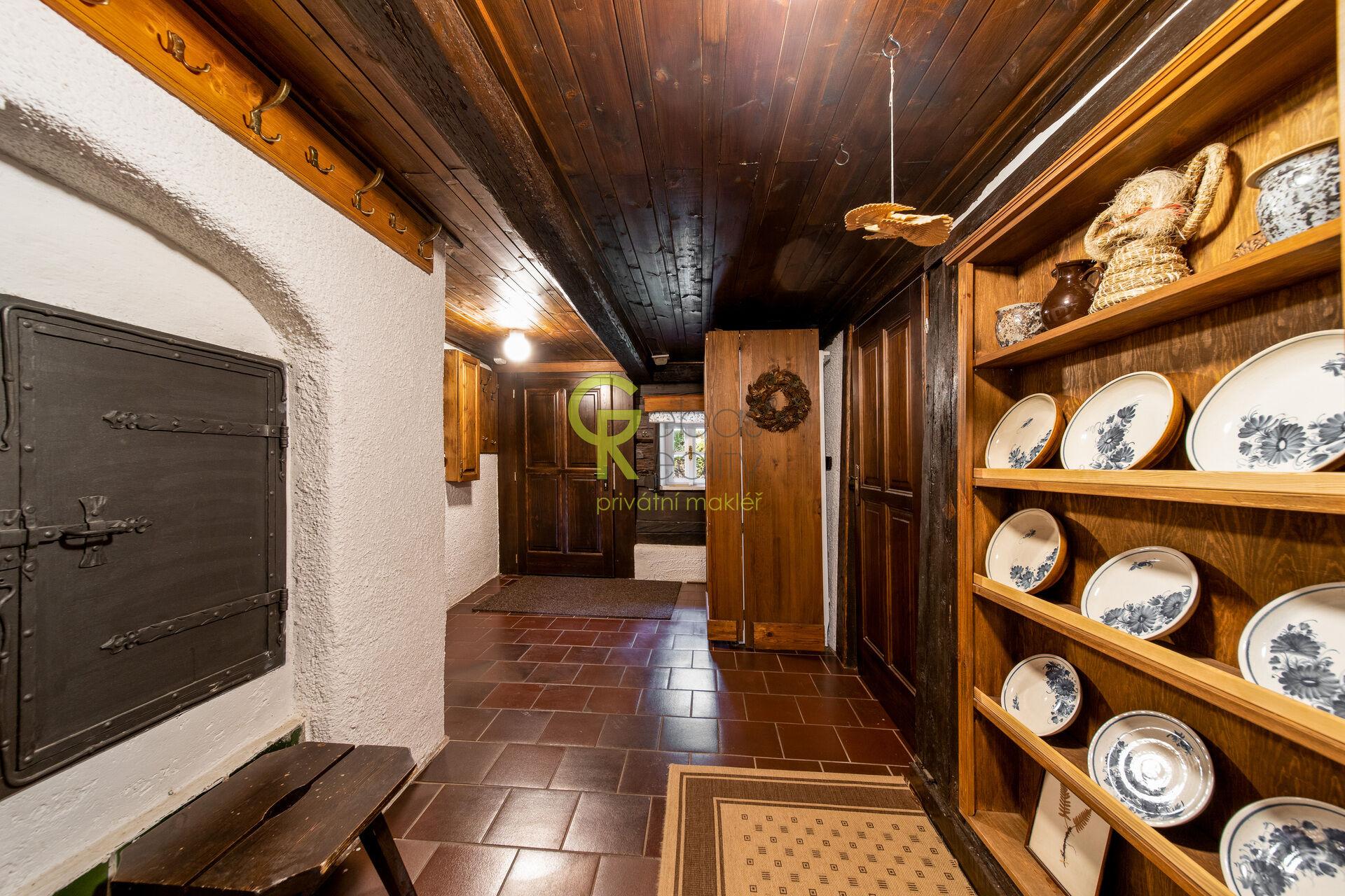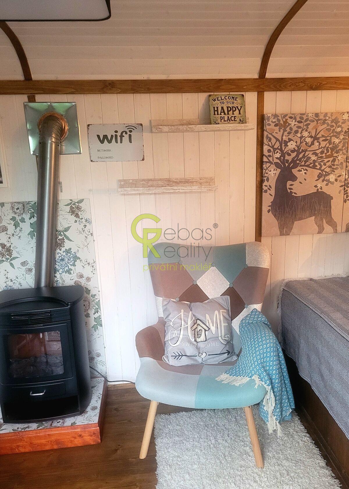 Ve výhradním zastoupení si Vám dovolujeme nabídnout ke koupi unikátní soubor nemovitostí tvořený stylovou roubenkou po kompletní renovaci a samostatnou obytnou maringotkou, situovaný v klidné a vyhledávané lokalitě Postřelná u Jablonného v Podještědí. Nemovitost je dlouhodobě využívána ke krátkodobým pronájmům a zároveň slouží k rekreaci majitele. Oba ubytovací koncepty jsou prostorově i provozně oddělené, cílí na rozdílné skupiny klientů, vzájemně si nekonkurují a dosahují obsazenosti přibližně 90 % v průběhu roku. Provoz je plně zajištěn včetně úklidu a technického servisu na místě. Hlavní objekt tvoří samostatně stojící roubená stavba s vlastním číslem popisným o užitné ploše cca 130 m², umístěná na pozemku o výměře 4.168 m². Dispozičně je řešena jako 4+kk + dílna + podkroví, které nabízí možnost dalšího rozšíření obytné plochy. Kolem chalupy se nachází dvě prostorné dlážděné terasy vhodné k venkovnímu posezení. Pozemek je mírně svažitý, upravený do kaskád pomocí gabionových zdí, což zajišťuje maximální soukromí, klid a výhledy do okolní krajiny. Na udržované zahradě se nachází okrasné i ovocné stromy, keře a dále prostorné sklepy vhodné k uskladnění. Interiér roubenky nabízí autentickou chalupářskou atmosféru. K dispozici je plně vybavená kuchyň s jídelní částí a masivní akumulační pecí se spací plochou, dvě samostatné neprůchozí ložnice, každá s vlastním krbovým topidlem, obývací průchozí pokoj, vstupní chodba, koupelna se sprchovým koutem a samostatné WC. Dům je napojen na obecní vodovod, na pozemku je také studánka či okrasné jezírko. Vytápění je řešeno elektrickým kotlem s možností dálkové regulace, alternativně krbovými kamny v každé z ložnic a pecí v hlavní místnosti. Kanalizace je formou jímky. Podlahy jsou dřevěné a dlažba s podlahovým vytápěním, okna stylová špaletová s bezpečnostními roletami. Dům je napojen na PCO, internet i mobilní signál bez omezení. Parkování je možné minimálně pro tři vozidla u domu, přístup po obecní, celoročně udržované komunikaci.Součástí prodeje je také samostatně umístěná celoročně obytná maringotka dle vlastního návrhu a realizace od lemované společnosti, citlivě zasazená do zahrady s vlastním vstupem a parkováním tak, aby bylo zachováno soukromí obou objektů. Maringotka je plně vybavená (v koupelně sprch. kout, WC, teplá voda, topný žebřík, kuchyň včetně lednice, sklokeramické desky, trouby, mikrovlnky, kávovaru a veškerého kuch.vybavení) má vlastní zázemí a terasu a je velmi úspěšně využívána ke krátkodobým pronájmům zaměřeným na klientelu vyhledávající netradiční pobyt v přírodě.Celý soubor nemovitostí je ve výborném technickém stavu, bez nutnosti dalších investic a je možné jej okamžitě užívat nebo převzít jako zavedený ubytovací projekt.K dispozici ihned. Pro více informací nebo domluvení termínu osobní prohlídky nás neváhejte kontaktovat. Rádi se Vám budeme věnovat. (PENB – G)